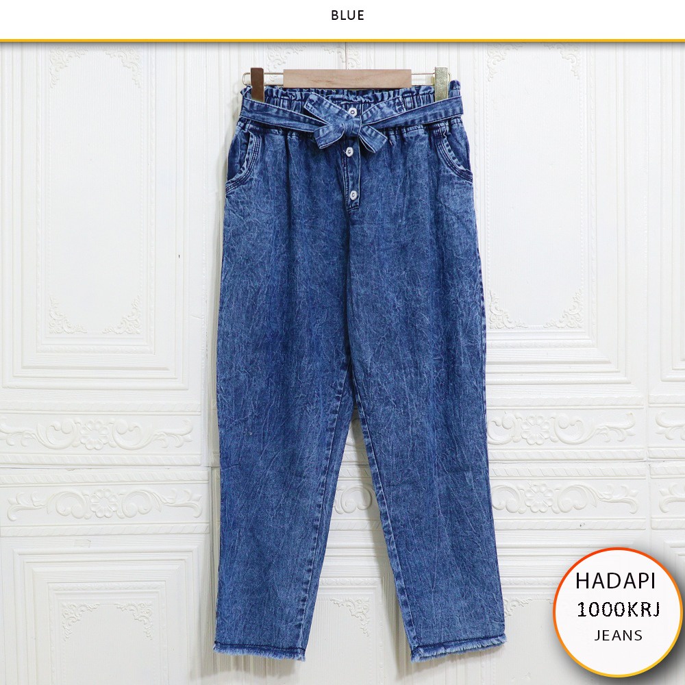 Celana Baggy Pants Jeans Variasi Kancing Bunga Tali Serut Pinggang Rawis Bawah Hadapi