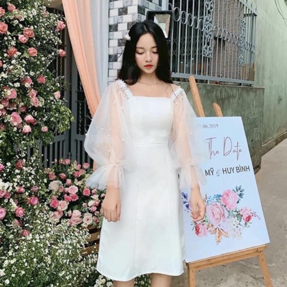 ĐẦM DỰ TIỆC TAY LƯỚI ĐÍNH HẠT CAO CẤP - VANASS